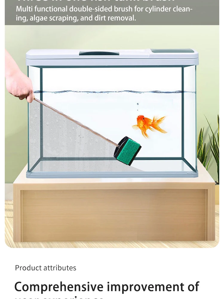 Cepillo para pecera, cepillo de mango largo, cepillo de limpieza de doble cara, herramientas de limpieza de acuario