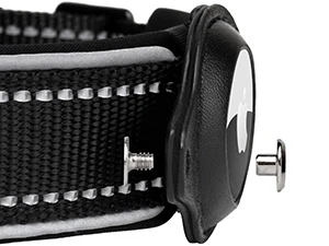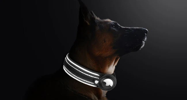 El collar para perros AirTag tiene cuatro puntadas reflectantes de 3M y rodea el collar para una máxima visibilidad.