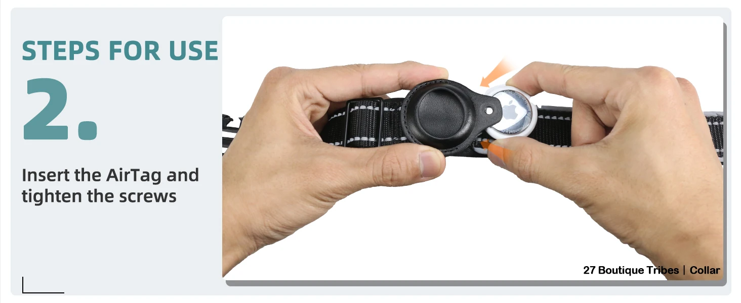 27 Boutique Tribes utiliza un tornillo para apretar la caja Air Tag, no hay necesidad de preocuparse de que se caiga del soporte Air Tag para el collar de perro.