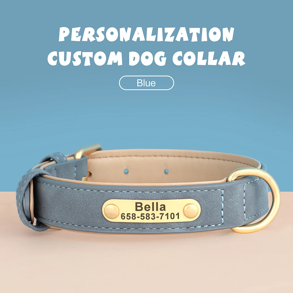 Collar de perro personalizado, collares de cuero PU grabados personalizados para perros, placa de identificación con grabado gratis para perros pequeños, medianos y grandes