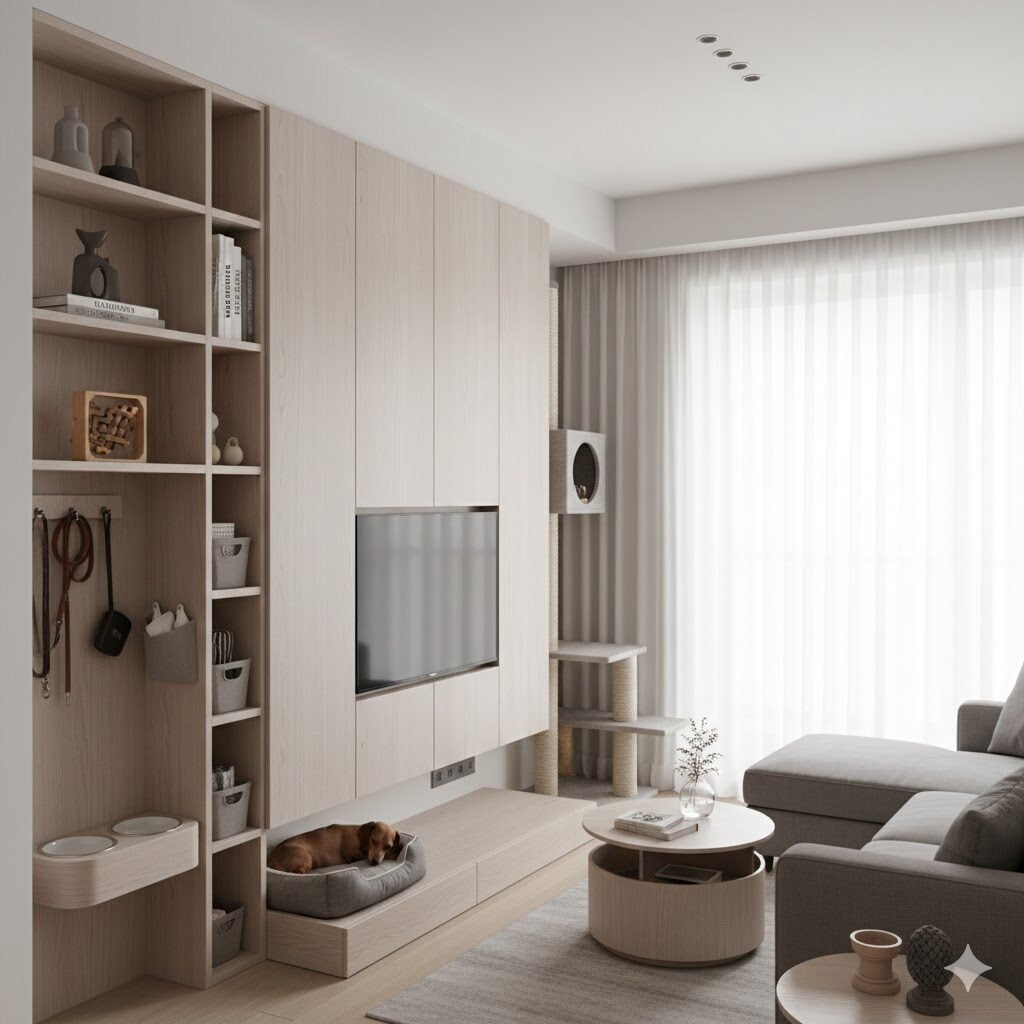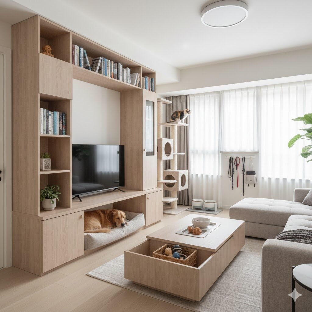 Nada de muebles aislados “solo para mascotas” que terminan desbordados.