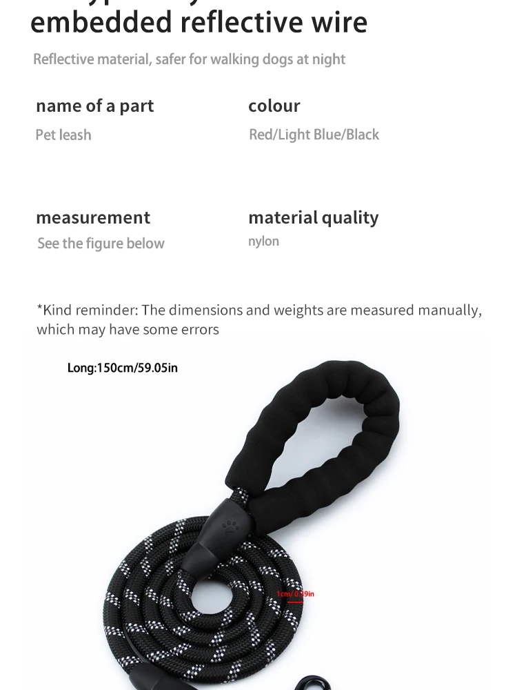 Diseño reflectante, cuerda de nailon cifrada, alambre reflectante incrustado, más seguro para pasear a su perro por la noche.