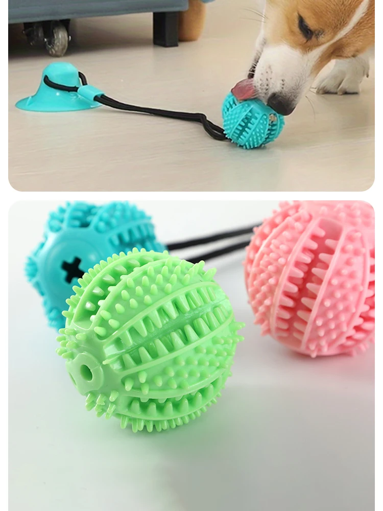 Juguete interactivo para perros con ventosa con sonido y dispensación de golosinas, pelota de goma duradera para entrenar y diversión de desgranar