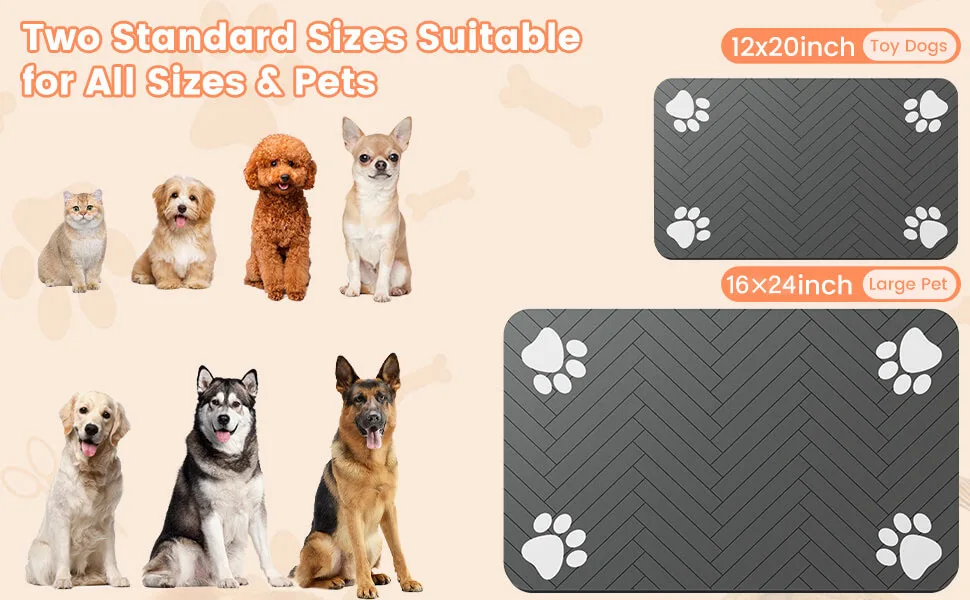 Fuerte absorbente y resistente a las manchas: nuestra alfombra de comida para perros cuenta con una absorción excepcional, absorbe rápidamente el agua y la leche derramadas y no deja rastros.Previene eficazmente las patas mojadas y mantiene limpia la zona de alimentación de su mascota.