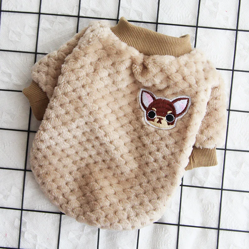 Traje cálido de lana para mascotas, suéter bonito con estampado de Chihuahua, abrigo para perros pequeños y medianos, Sudadera con capucha, chaqueta de peluche para Bulldog y Chihuahua